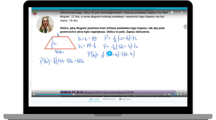 • Lekcje wideo do każdego tematu (WSZYSTKIE tematy, które pojawiają się na maturze podstawowej)